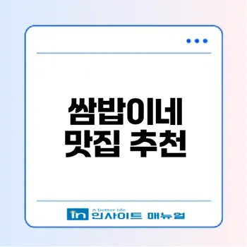 각종 리뷰와 평가는 쌈밥이네를 더욱 특별한 공간으로 만들어 줍니다. 여러분도 직접 경험해 보길 바랍니다!