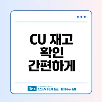 - 포켓CU 앱 설치하기: 이 앱은 사용자 친화적인 인터페이스를 가지고 있어 손쉽게 재고를 조회할 수 있습니다.